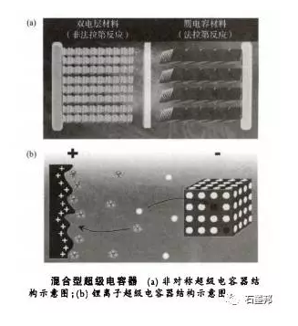 混合型超級電容器一般是指由不同類型正負極電極材料組成的器件:一極是含贗電容電池材料,另一極是雙電層電容器材料。混合型臟電容器結(jié)合了雙電層材料的快速充放電和贗電容的高能m密度的特性,可同時具有高功率密度和高能量密度,彌補了在電池和超級電容器兩者不可兼得的空缺。